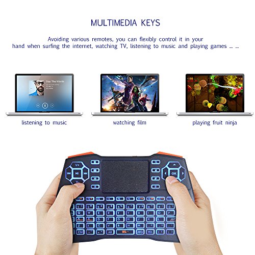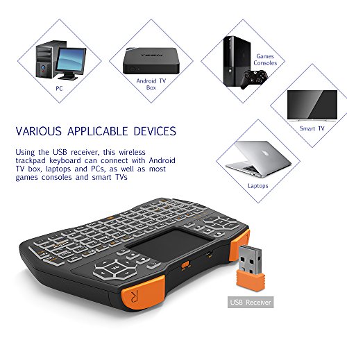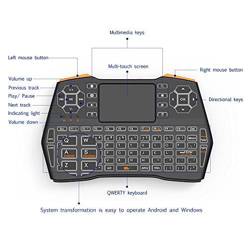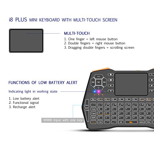 Perfect combo (2017 Update)U2C i8Plus mini keyboard with multi-touch screen 2.4GHz Backlit Mini Wireless keyboard, TouchPad combo, with USB interface adapter. it perfect adapt for people that within a 15' radius to conduct presentation and operate PC wirelessly. Change slides and screen options, write on the screen, emphasize words and objects just by using this wireless mini keyboard and mouse with touchpad. Perfect for PC, Pad, Andriod TV Box, Google TV Box, etc
