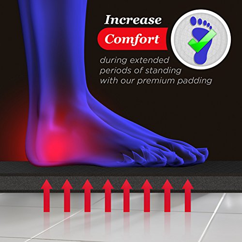 - BEST-IN-CLASS COMFORT: Constructed from the highest grade of top-density 3/4" thick advanced comfort foam. Unlike competing mats that use inexpensive rebond polyurethane foams, these are ergonomically superior and are designed to dramatically increase stability and reduce stress and pressure on feet, knees and the lower back over long standing periods.