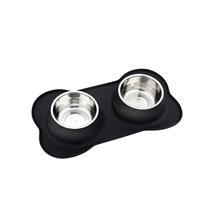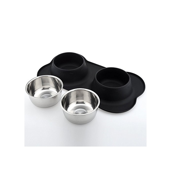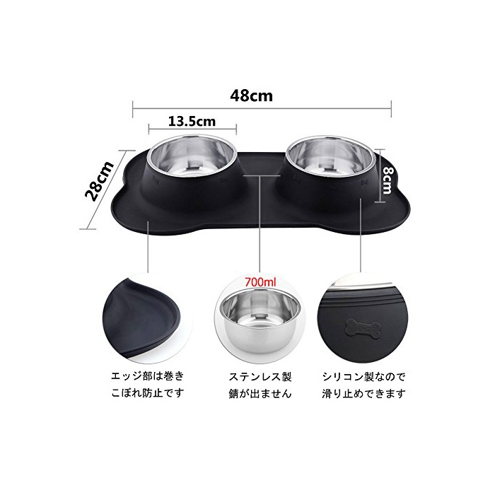 원본상품명:URPOWER ペットボウル 食器 皿 犬猫用 餌いれ 二つステンレス製ボウル 滑り止め シリカゲル製本? こぼれ防止シリコン台セット ダブルフ?ドボウル 700ml*2大容量 Lサイズ 小動物用食器