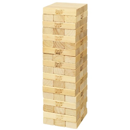 Studio : Brybelly Publisher : Brybelly Binding : Toy Product Description Jenga is a game of block-building, tower-crashing fun. To start, build a tower from the hardwood blocks. Each player takes a turn carefully removing a block from the tower and then replaces it at the top of the stack. Be the last player to remove a block without the tower crashing down and you win! You have to be skilled, and you have to be careful, because Jenga defies the laws of gravity! Each game contains 54 hardwood blocks, a stacking sleeve, instructions and a free storage bag. Jenga is recommended for one or more players ages 6 and up. 0