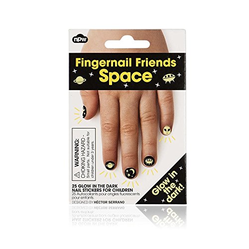 NPW-USA Space Fingernail Friends Nail Stickers (25 Count), Glow In The Dark