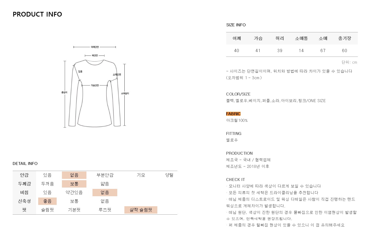 텐션감 좋은 골지소재로 제작되어 편안한 착용감 선사해드려요
