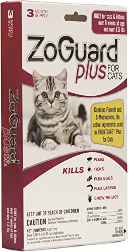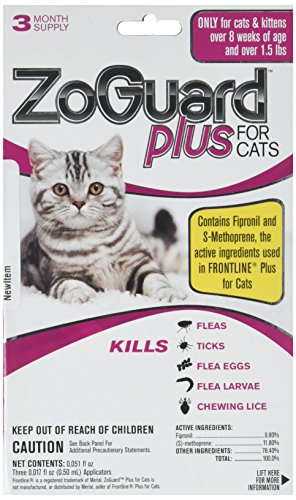 ZoGuard Plus - Cat (over 1.5 lbs) (3 dose) flea tick lice flea eggs larvae kills prevent. Bette...