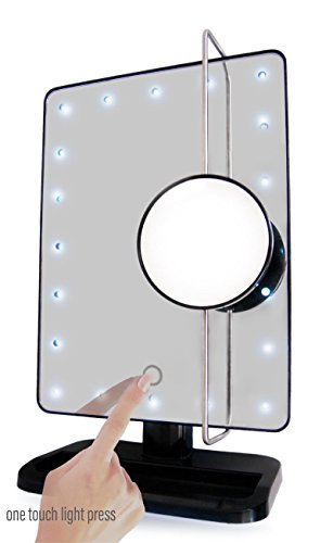 Rucci Vanity Mirror with L.E.D. light and movable round insert mirror 10X magnification. 8 inches long by 13 inches height including base. Round insert...