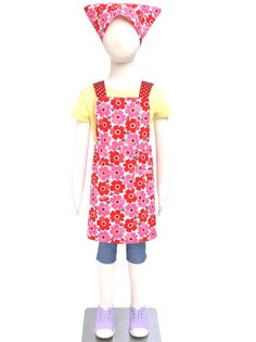 -. Title : バッククロス子どもエプロン 三角巾付き(身長100-120サイズ) ノルディックフラワー・レッド 日本製 N7904010