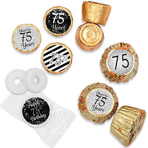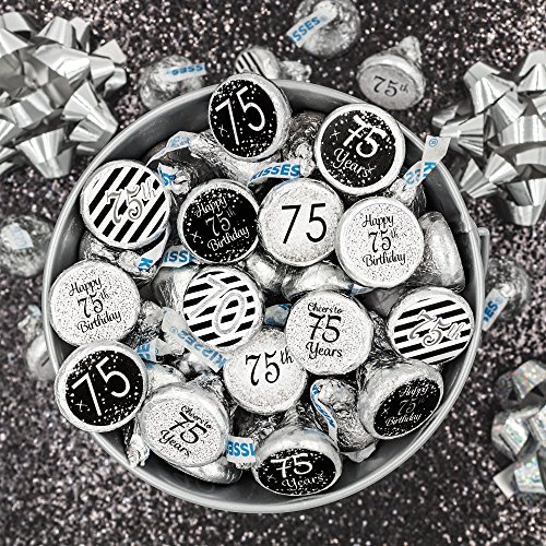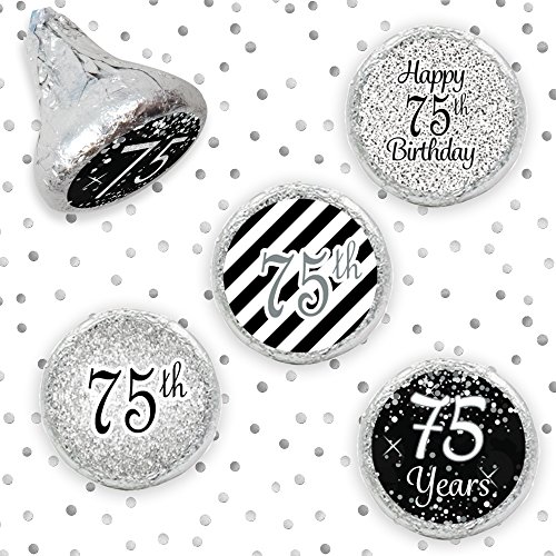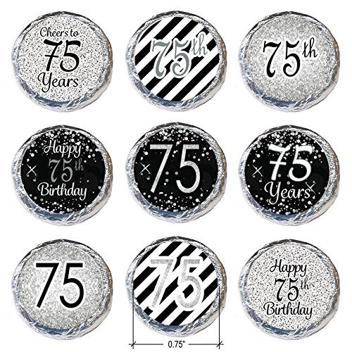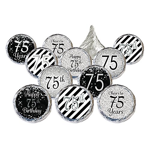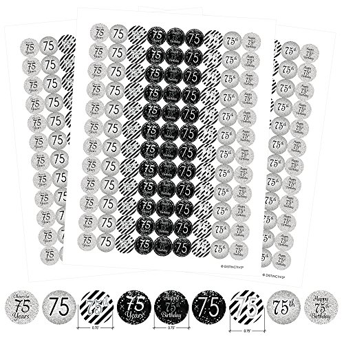 Black and Silver 75th Birthday Party Favor Stickers (324 Count)