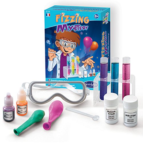 -. Binding : Toy -. Brand : SentoSphere -. Color : Multi -. EAN : 3373910002844 -. Feature : Discover the mysterious world of chemistry / Create an effervescent reaction in a test tube / Measure the pH of water or observe the color changes in liquid / Made in France - for children 8 years and older -. IsAdultProduct : 0 -. Label : SentoSphere -. Manufacturer : SentoSphere -. MPN : 075284 -. PackageQuantity : 1 -. PartNumber : 075284 -. ProductGroup : Toy -. ProductTypeName : TOYS_AND_GAMES -. Publisher : SentoSphere -. Studio : SentoSphere -. Title : SentoSphere Fizzling Mystery - Science Kit