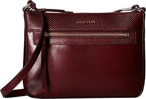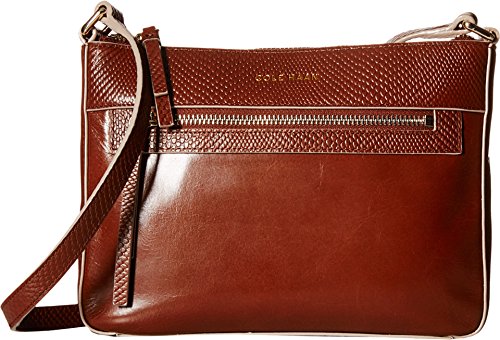 Top-zip closure. Leather crossbody strap, adjustable. Gold-tone hardware throughout. Exterior zipper pocket across the front. Fully lined polyester interior. Interior features one zippered compartment and three credit card slots. Imported.