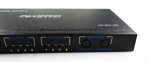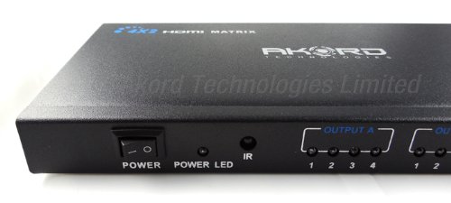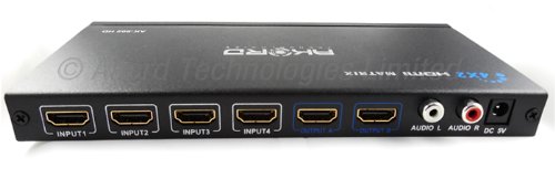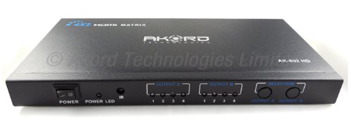 4 X 2 PORT HDMI MATRIXThis matrix is with HDMI inputs and 2 HDMI outputs. It is a true matrix and can distribute any one of 4 sources to either of 2 displays, and can work as a splitter to show the same source on 2 displays simultaneously. It is HDMI v1.3 and supports full HD 1080p and 1080p @ 24Hz 3D source.Switch between all your HDMI inputsTrue matrix - distribute any one of 4 sources to either of 2 displayDistribute any one of 4 sources to both displays simultaneouslyCompatible with full 1080p@24Hz and including 3DSwitch easily between sources using the remote control or via buttons on the unitWith inner IR receiver to enlarge IR remote control signalHDMI v1.3 and compliant with HDCPConnect up to 4 HDMI devices and 2 output devicesNo compression or loss of qualityHigh performance up to 2.5Gbps100% brand new