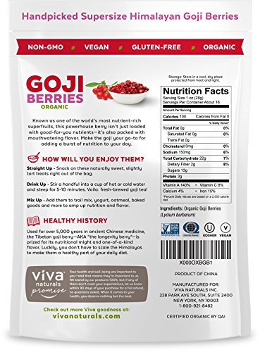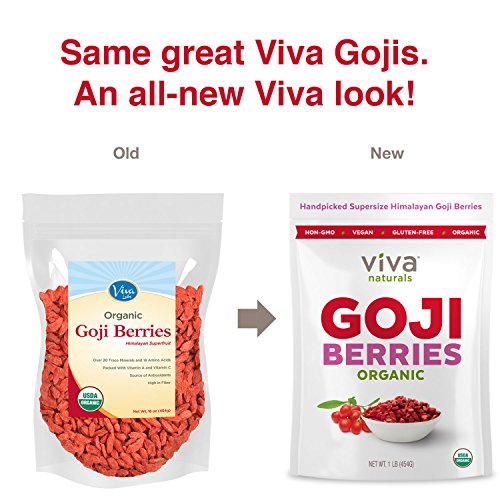 Viva Naturals Premium Himalayan Organic Goji Berries, Noticeably Larger and Juicier, 1lb bag