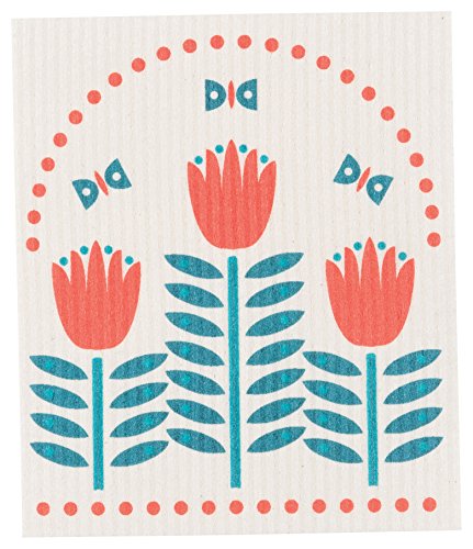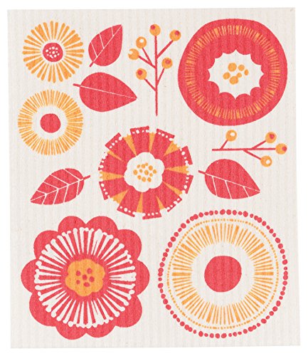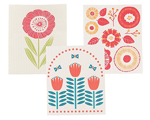 Now Designs Flowers Swedish Dishcloth Set of3, Red