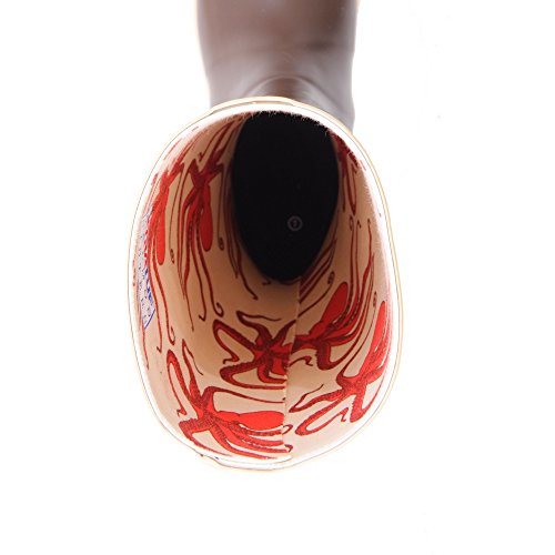 Eye-catching Salmon Sisters octopus print lining is revealed when boots are rolled down; allows for dual function as women's rain boots