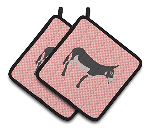 Caroline's Treasures BB7844PTHD American Mammoth Jack Donkey Pink Check Decorated Pot Holder, 7.5" x 7.5", Multicolor