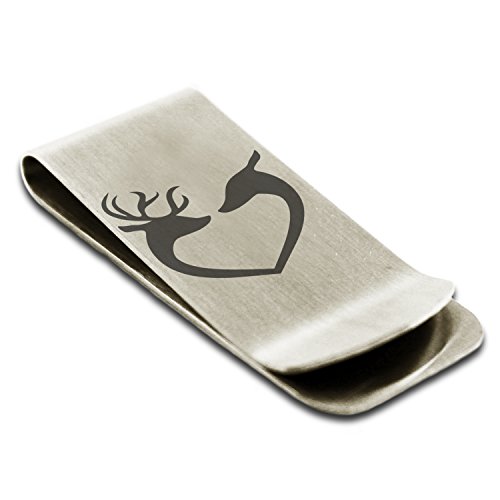 (Tioneer)/Accessories/Wallets, Money Key Organizers/DIRECT FROM USA/Stainless Steel Reindeer Heart Love Engraved Money Clip Credit Card Holder