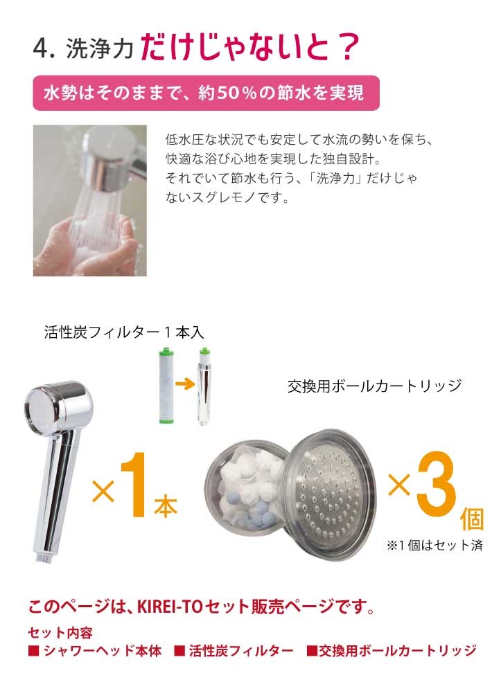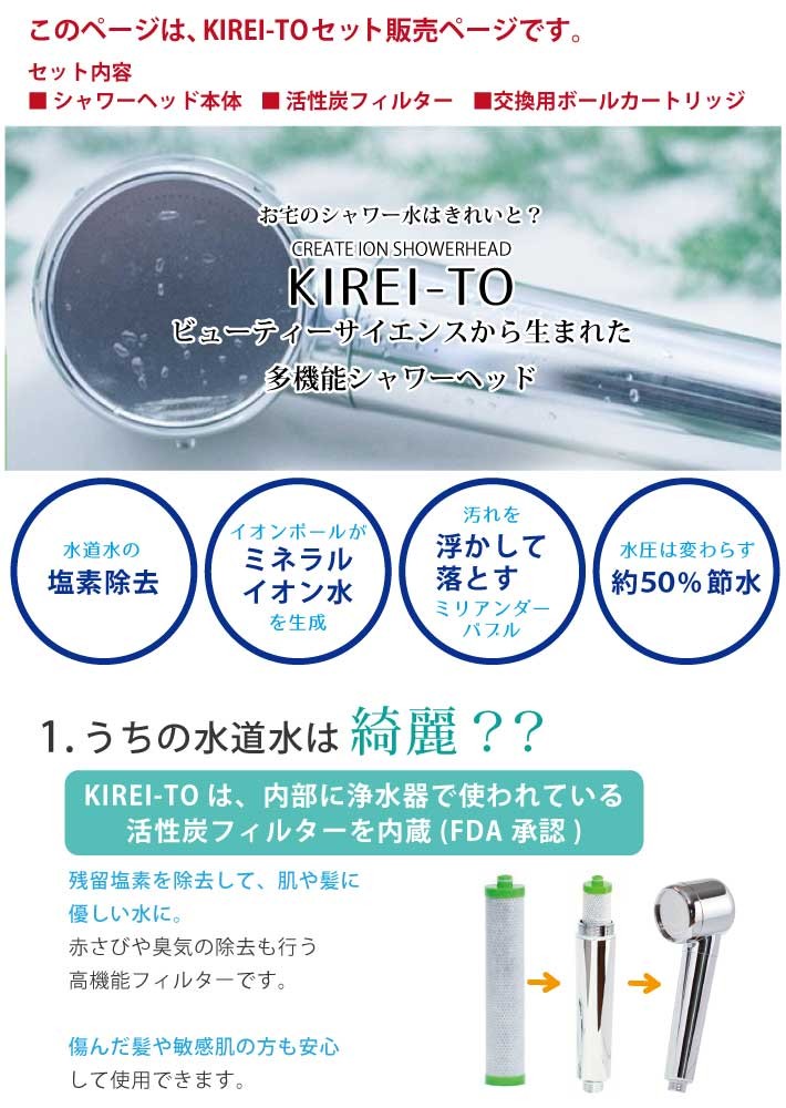 共同開発した、”水道水を変える”シャワーヘッドがKIREI-TOです。