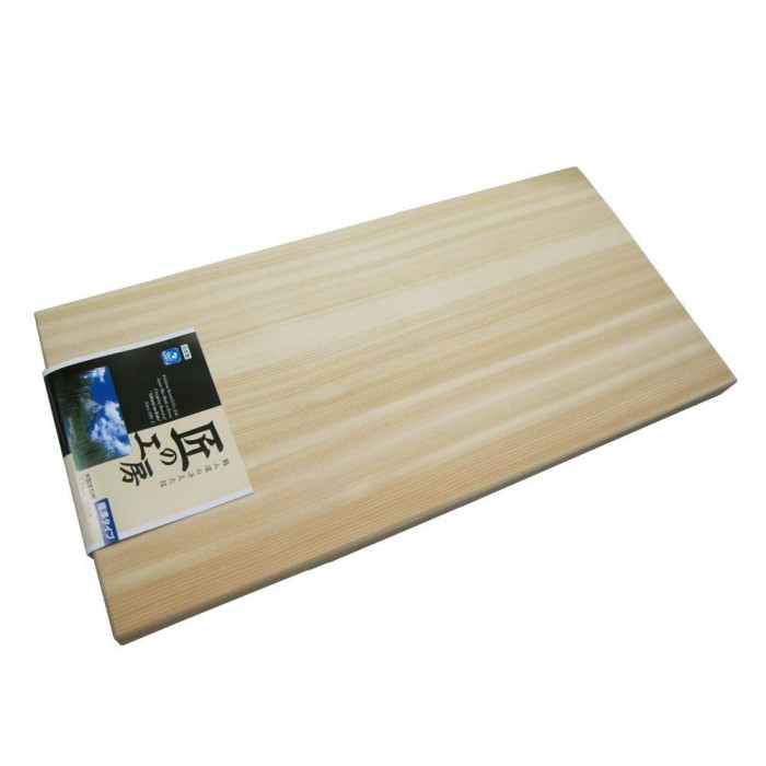 大きな魚を調理する際に役立つ、サイズが大きな業務用の木製まな板。プラスチック製のまな板に比べて、すべりにくく、刃あたりも柔らかいです。
