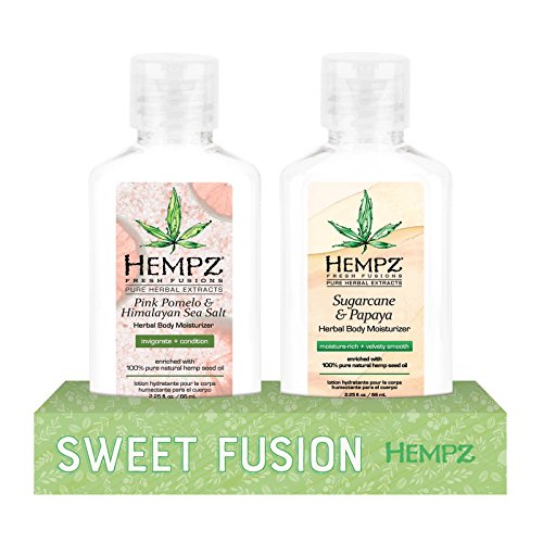 Pink Pomelo & Himalayan Sea Salt Herbal Moisturizer Hempz Pink Pomelo & Himalayan Sea Salt Herbal Moisturizer UPC: 676280035980 2.25 fl. oz. QTY: 1 Hempz Pink Pomelo & Himalayan Sea Salt Herbal Body Moisturizer is a lightweight, creamy formula that helps provide dramatic skin hydration and nourishment to help improve the overall health and condition of skin. Enriched with 100% Pure Natural Hemp Seed Oil fused with pink pomelo extract and Sea Moisture Complex consisting of red algae and sea water, Shea Butter and Vitamins A, C and E to help provide natural antioxidant properties that invigorate and rejuvenate skin leaving it feeling soft, smooth and supple. Sugarcane & Papaya Herbal Body Moisturizer Hempz Sugarcane & Papaya Herbal Body Moisturizer UPC: 676280033290 Variations 2.25 fl oz QTY: 1 Hempz Sugarcane & Papaya Herbal Body Moisturizer is a lightweight, creamy formula that helps provide dramatic skin hydration and nourishment to help improve the overall health and condition of skin. Enriched with 100% Pure Natural Hemp Seed Oil fused with sugarcane and papaya extracts, Shea Butter and Vitamins A, C and E to help provide natural antioxidant properties that refresh and rejuvenate skin leaving it feeling soft, smooth and supple.