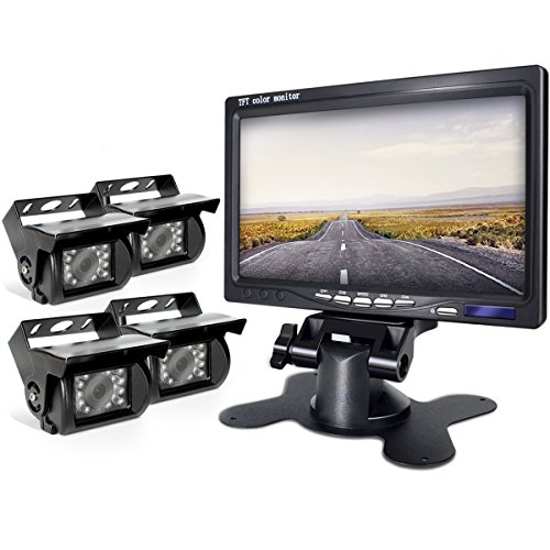 Backup Camera and Monitor Kit Quad Backup Camera For Truck/Semi-Trailer/Box Truck/RV/Trailer/Tractor/ When Reversing Parking Backing Make No Blind Area eRapta ER04 With 7 Inch Split Quad Monitor