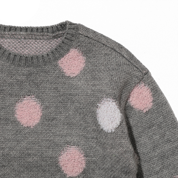 상세설명-울혼방소재로 따뜻하며 도트무늬가 있어 러블리한 느낌으로 코디되는 스웨터입니다.