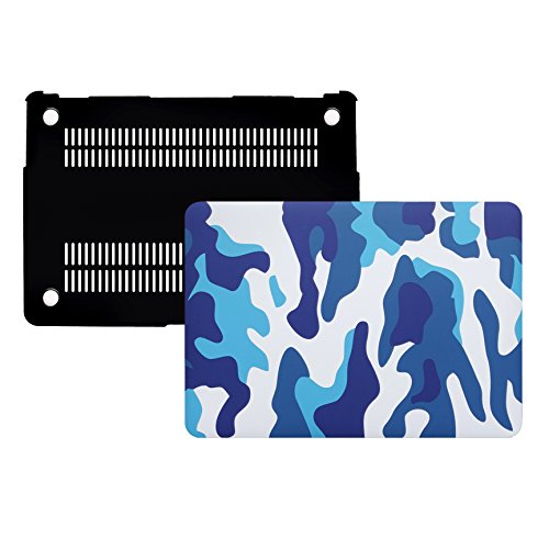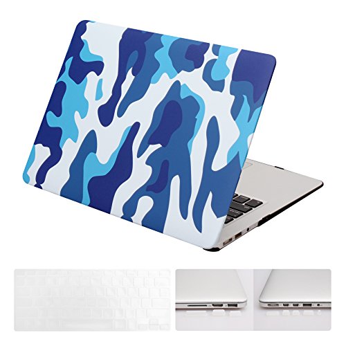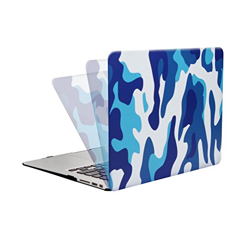 DWON Soft-Touch Plastic Hard Case with Keyboard Cover with Dust Plug for Macbook Air 13 inch (Model:A1369/A1466)-Camo Blue