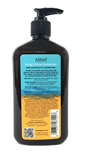 Argan Oil Body Face Moisturizer 18 ounce (Paraben FREE) with Pump by Mina Organics. Factory Fresh!