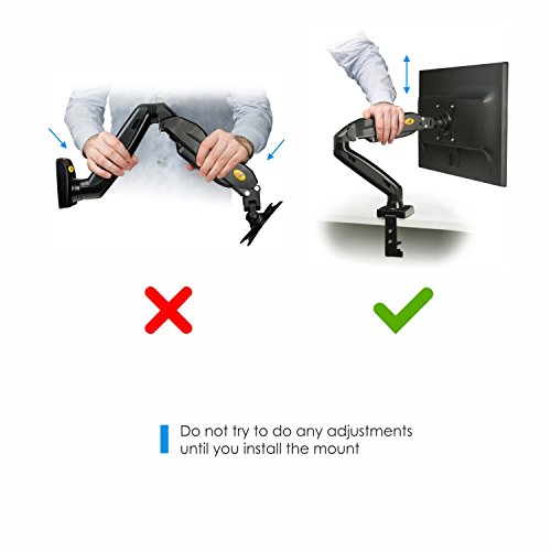 FULLY ADJUSTABLE: The durable gas spring system ensures easy one-touch positioning of your screen in any desirable setting; personalize your workstation any way you want; You can adjust the desk mount ONLY AFTER you fix it and hang a screen/monitor on it!