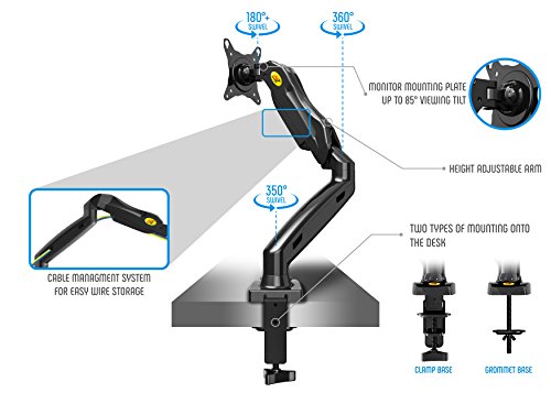 STABLE: C-clamp on any working surface or grommet installation; comes with all needed hardware. Heavy-duty construction and superb quality materials keep your arm mount stable – this is the sturdiest desk mount on the market.