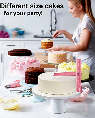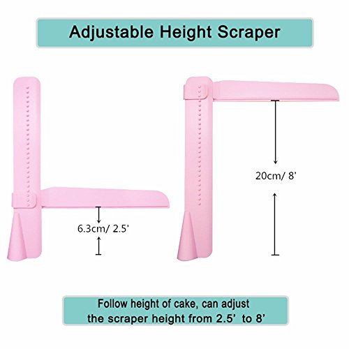 CREATIVE DESIGN - Adjustable Cake Scraper Smoother use to create designs on the side as well as top of cakes at the same time, Help to create sharp edges easily. Also use to smooth icing in preparation for decorating, Ergonomic design with removable scraper, you can adjust the height according to your needs.