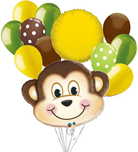 -. Feature : 1 - 32" Mischievous Monkey Shape Balloon / 1 - 18" Yellow Round Balloon / 10 - 12" Mixed Latex Balloons (3 Yellow, 3 Lime Green, 1 White Polka Dots on Brown, 2 Brown, 1 White Polka Dots on Lime Green) / Packaged & Shipped together / Helium & Ribbons not included