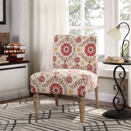Studio : Better Homes and Gardens Publisher : Better Homes and Gardens Binding : Office Product Product Description This stylish and functional accent chair is a great solution for additional seating in both your living room or bedroom. Featuring solid Wood legs, this chair comes in a variety of patterns, offering something for everyone. 0