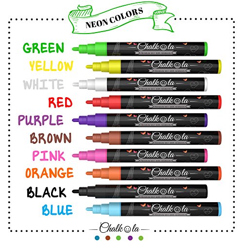 Chalkola Kreidestift 10er Pack neonfarbene Markerstifte. Fur Whiteboard, Kreidetafel, Fenster, Tafel, Bistros 3mm Kugelspitze