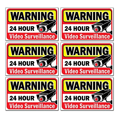 Signs Authority Video Security Decals Sign for Home/Business 6 Piece Set Self Adhesive Vinyl Stickers-Outdoor/Indoor 4" x 2.5" for Window, Door & Wall For CCTV, DVR, Camera Surveillance Systems