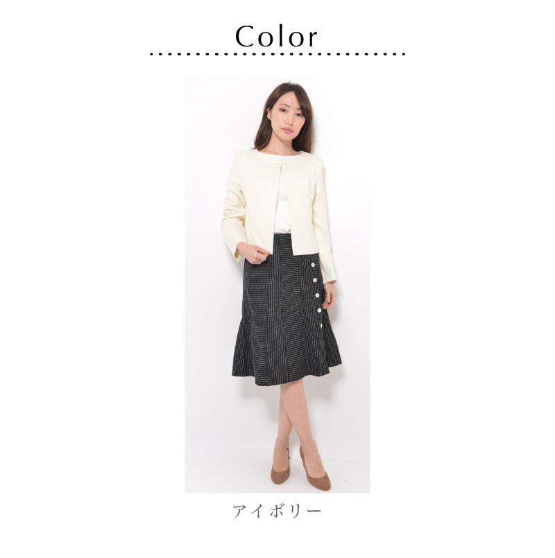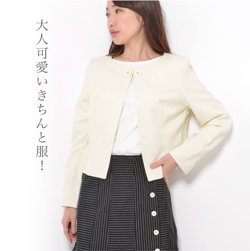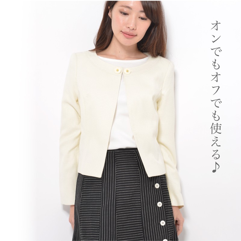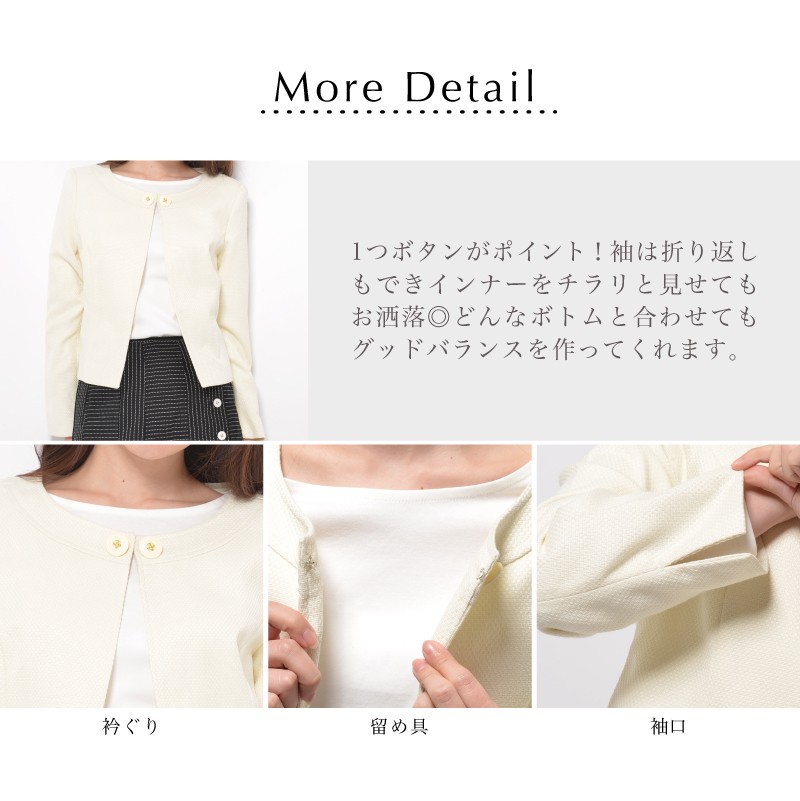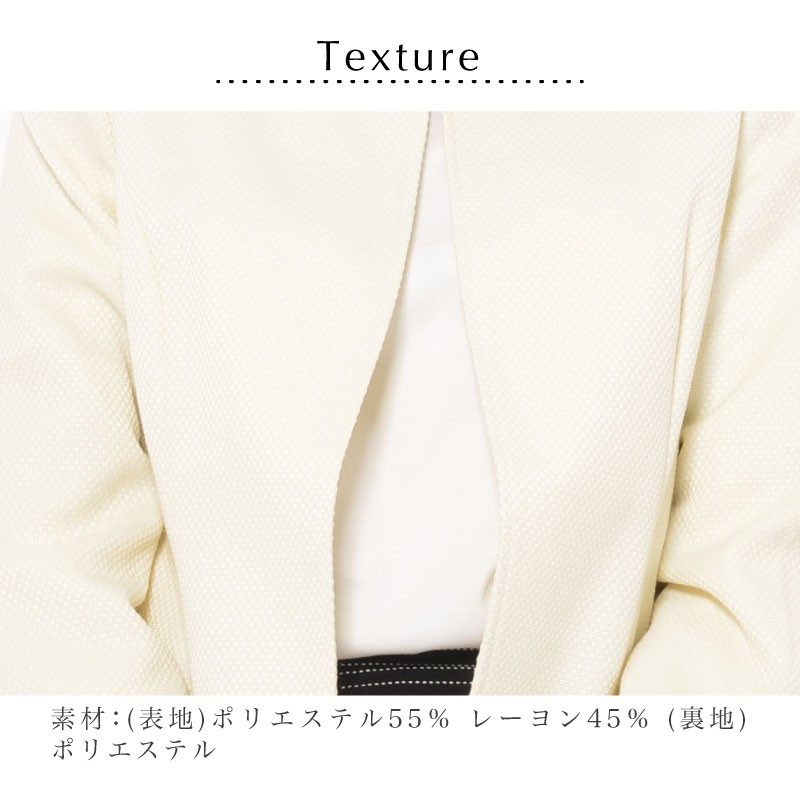 | サイズ | Mサイズ | | 実寸 | 表記は全てcm バスト(89) ヒップ(95) 着丈46 身幅50 袖丈58 肩幅39 ●裏地有 | | 素材 | [表地]ポリエステル55% レーヨン45% [裏地]ポリエステル | | 生産国 | 中国 | | 裏地 | あり | | 生地の伸縮 | なし | | 生地の透け感 | なし | | カラー | 01. アイボリー | | 注意点 | ▼綿混合商品は洗濯時に多少縮む事がございます。 ▼パソコン、モニター等の環境により、実際の商品素材カラーが多少異なる場合が御座います。予めご了承ください。 ▼お手数ですが必ずお買い物ガイドを一読頂いてからご利用いただきますようお願い申し上げます。 | |