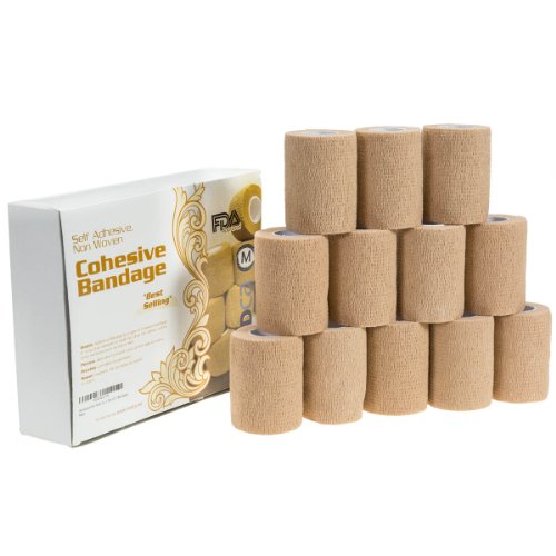 MEDca Self Adherent Cohesive Wrap Bandages 3 Inches X 5 Yards 12 Count with Strong Elastic First Aid Tape for Sprain Swelling and Soreness on Wrist...