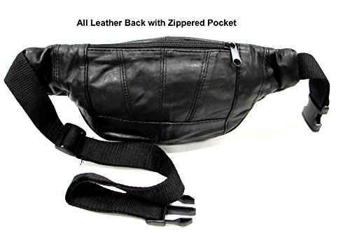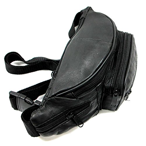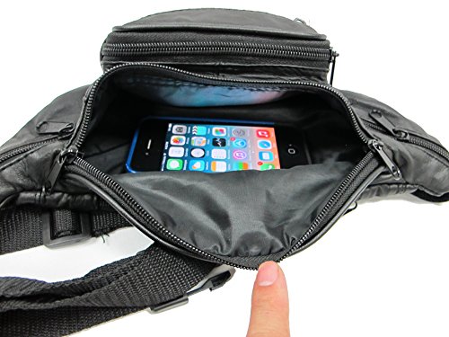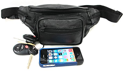 -. Title : 6 Zipper Pockets Genuine Soft Leather Fanny Pack Waist Bag Small Size - Black