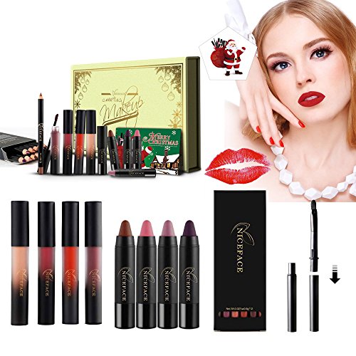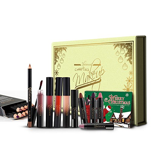 4Colors Matte Liquid Lipstick +4Colors Lip Gloss Pen+12Colors Lipliner Pen+2Pcs Lip Brush HUBEE Long-Lasting Lip Makeup Box For Chirstmas