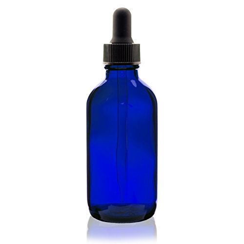 4 Oz (120 ml) BLUE Boston Round Glass Bottle w/ Dropper - Pack of 12