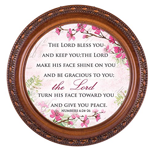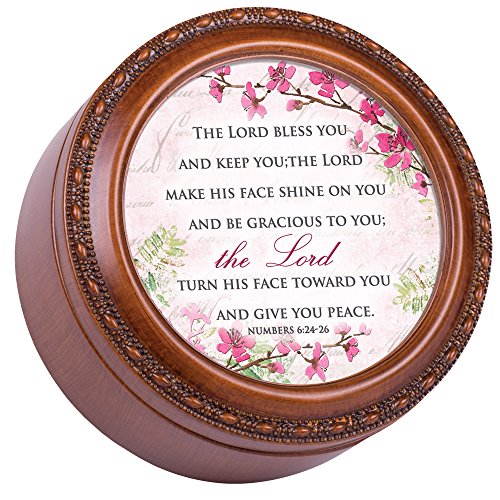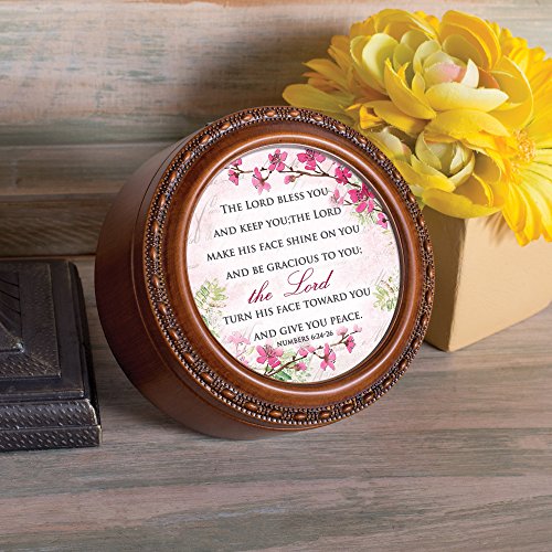 Lord Bless You and Keep You Round Wood Finish Jewelry Music Box Plays Tune Amazing Grace