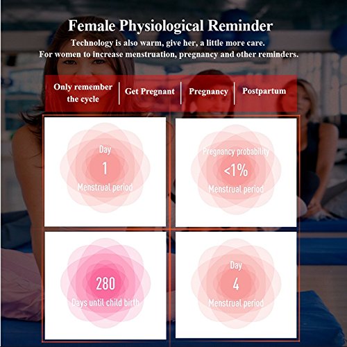 - Original Function: 1, The Smart watch can record and view the data of women's menstrual period, prepare pregnant,pregnancy and parenting. 2, You can set the icon of each alarm clock in the APP, vibration to remind and display the selected icon, you can immediately know what to do next, simple and convenient. 3, This fitness tracker charging through USB port.