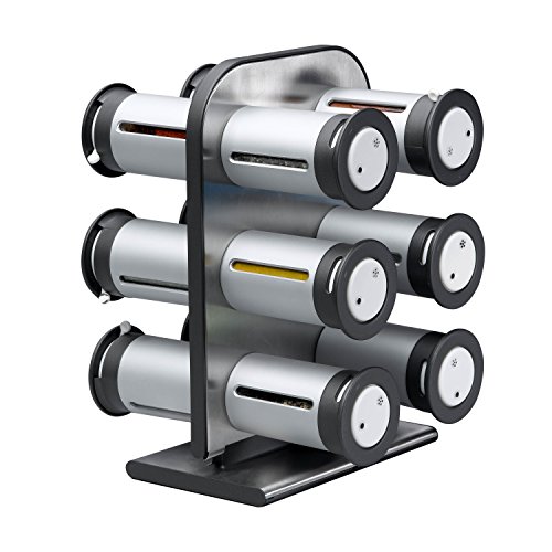 Zevro KCH-06098 Zero Gravity Countertop Magnetic Spice Rack with Canisters, Metallic/Grey - Set of 12