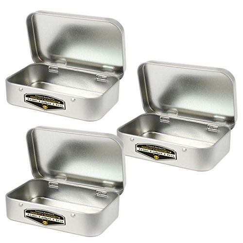 Mighty Gadget (R) Medium Size Empty Hinged Lid Survival Tin Container for Geocaching or Survival Gear (3 Pack) - 3.6875" L x 2.3125" W x 0.75"