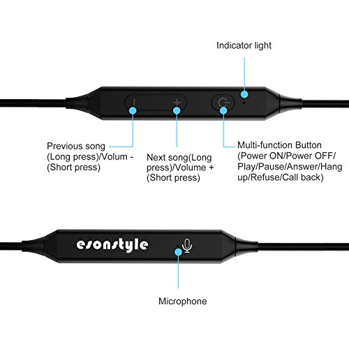 Komfortable und sichere Passform: Mit ergonomischem Design sorgt es fur esonstyle Bluetooth Kopfhorer fur sichere und bequeme. Es ist toll fur Gym, Laufen, Wandern und etc.1 Paar Ohrhaken und 3 Paar Silikon Ohrkappe (S / M / L) kann fur verschiedene Ohrgrosse passen.