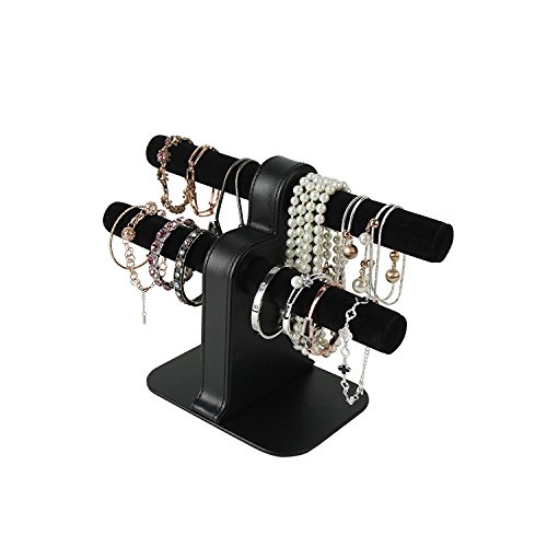 JackCubeDesign Leather Velvet Bracelet Necklace Display Stand Jewelry Organizer Holder Rack(Black)-:MK109