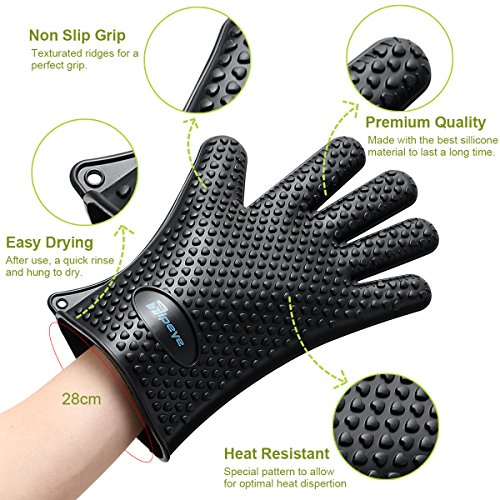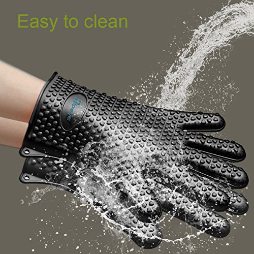 - 🐔SUPERIOR NON-SLIP GRIP: Each of our silicone 5-finger BBQ gloves comes with textured gripping surfaces to reduce the risk of accidents. Never again worry about slipping plates, hot pans or steamy ovens. No worry about taking off the gloves difficultly, you could take it off via the non-slip finger.