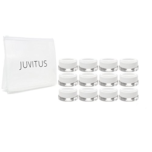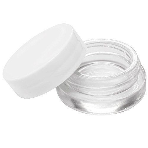 Clear Glass 7 ml Thick Wall Airtight Small Balm Sample Wax Concentrate Jars with White Foam Lined Smooth Lids (12 Pack) + Travel Bag