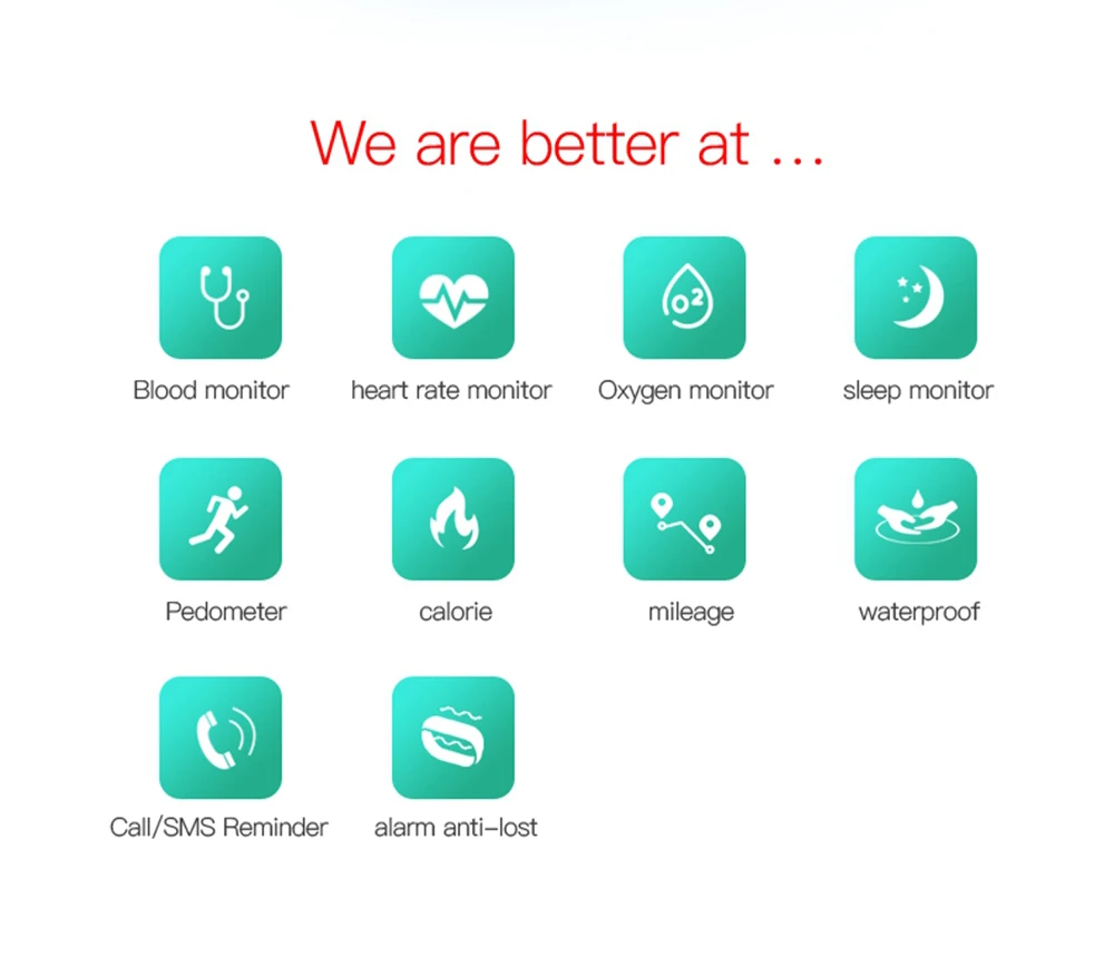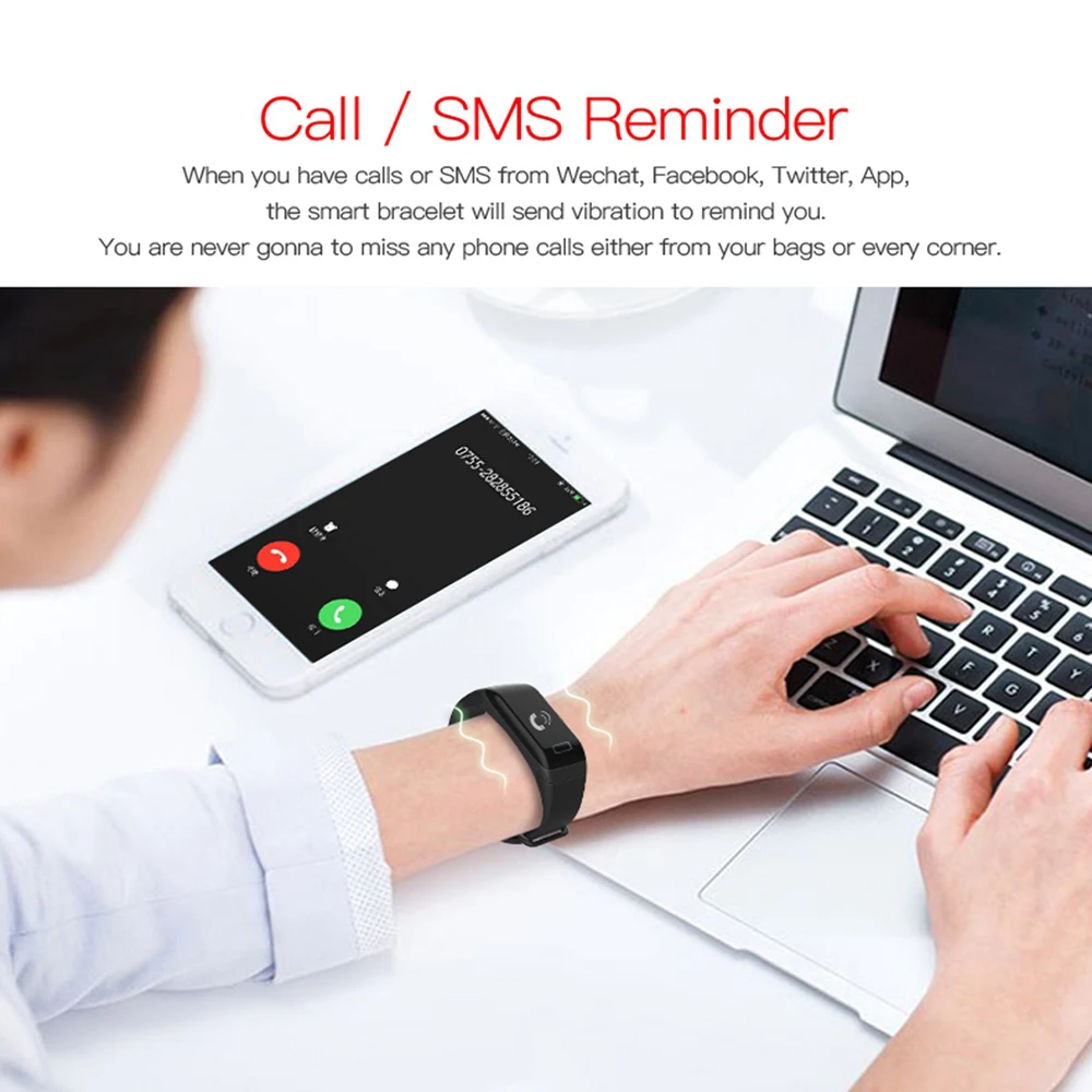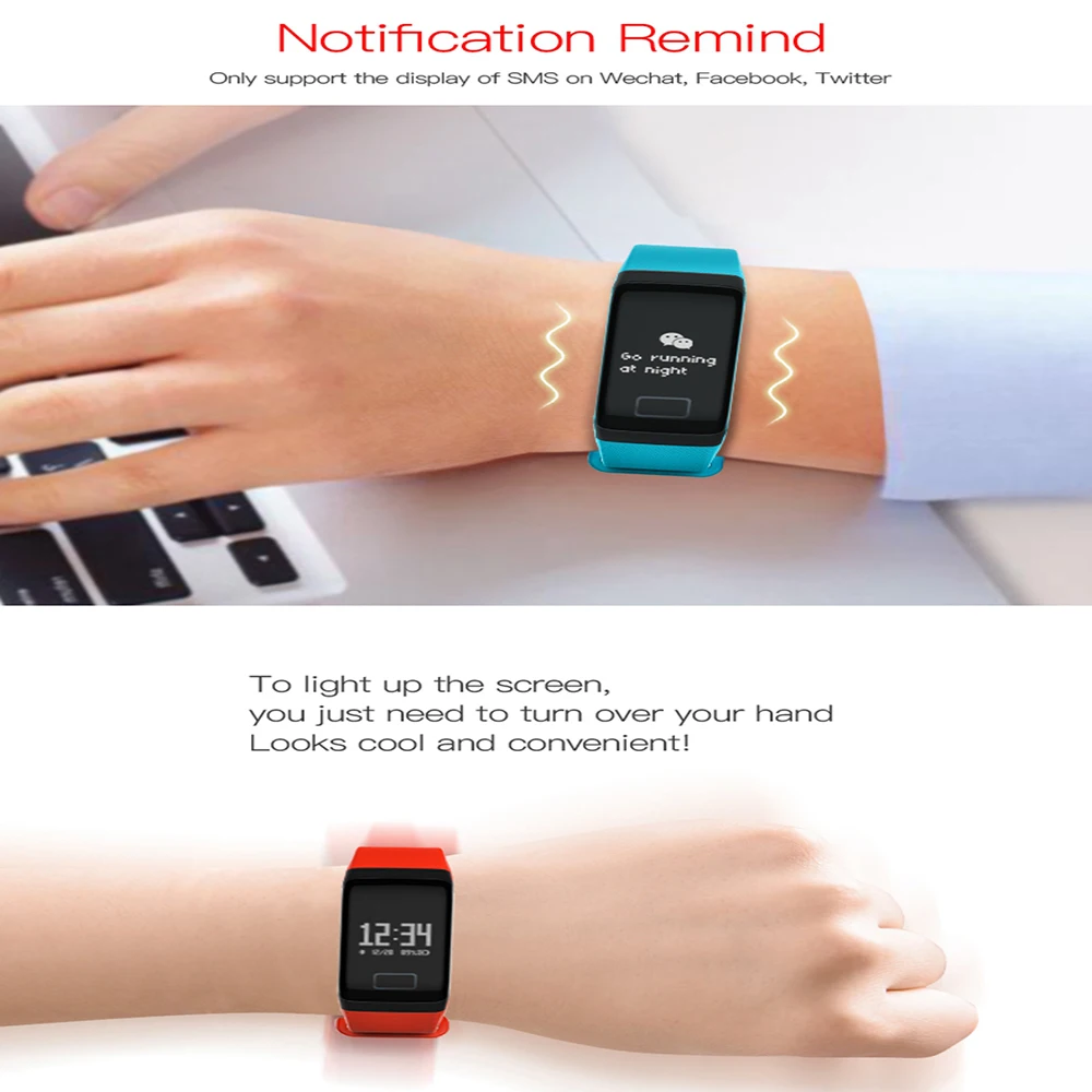 Function:Passometer,Sleep Tracker,Heart Rate Tracker,Fitness Tracker,Message Reminder,Call Reminder