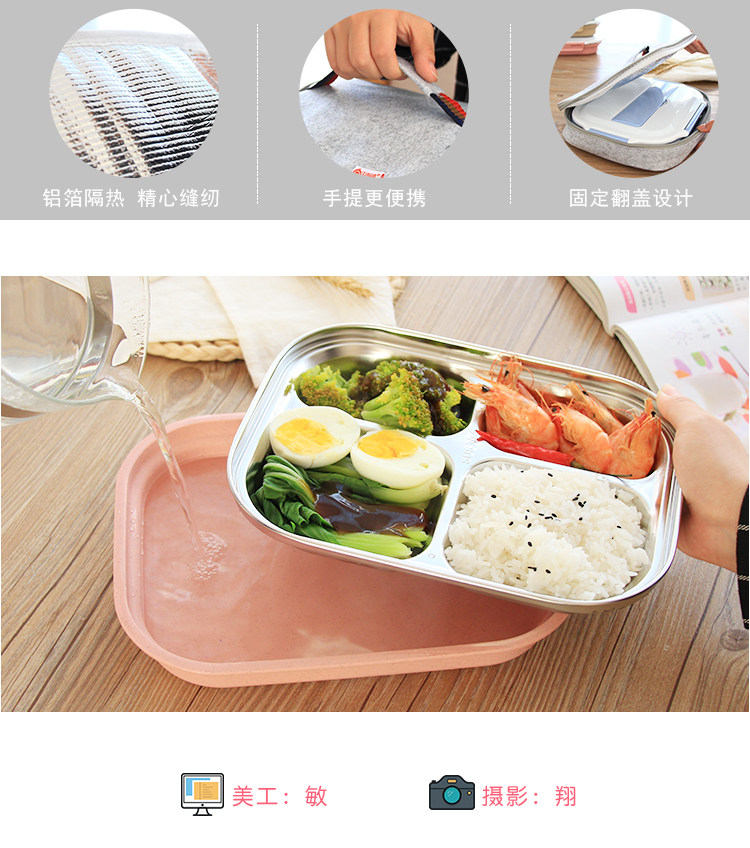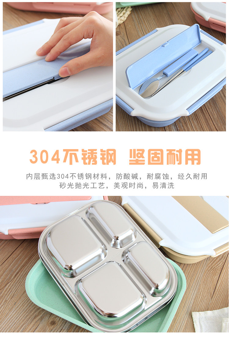 日式304不锈钢保温饭盒微波炉分格便当盒小学生餐具上班成人餐盒