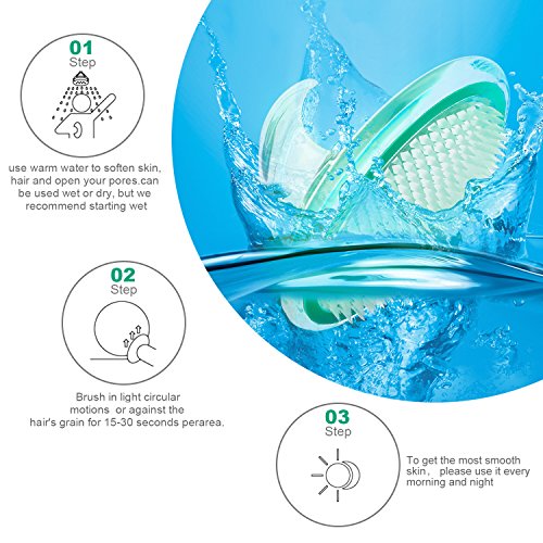 Easy To USE: Condition the brush is better used after Showering for 5 or more minutes, to expands the pores and soften the hair and skin. Gently use the soft brush, brushing your skin in small circular motion on the target area within your comfort level.
