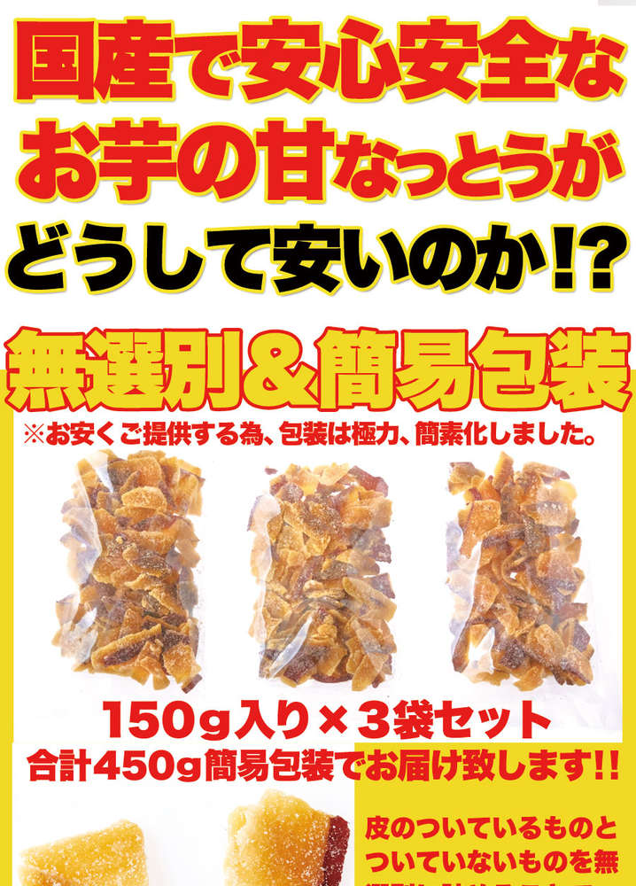 ●国内産の生のさつま芋をそのまま切って製造しております為、作柄、時期により製品の色、食感、形状に多少の差が生じます。