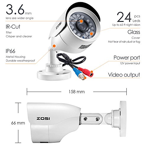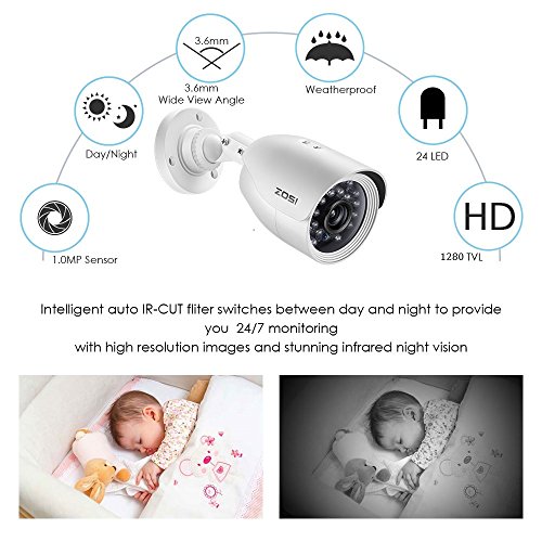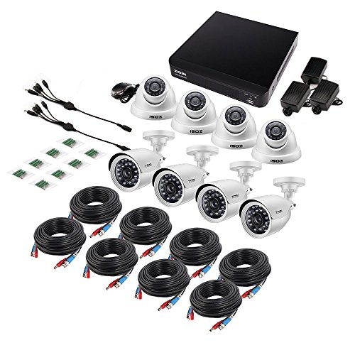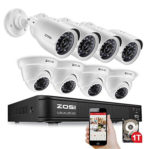 ZOSI 8-Channel 720p AHD Security Camera System,1080N DVR Recorder (1TB Hard Disk Built-in) and (8) 1.0MP 1280TVL Indoor/Outdoor Weatherproof Surveillance Cameras with IR Night Vision LEDs